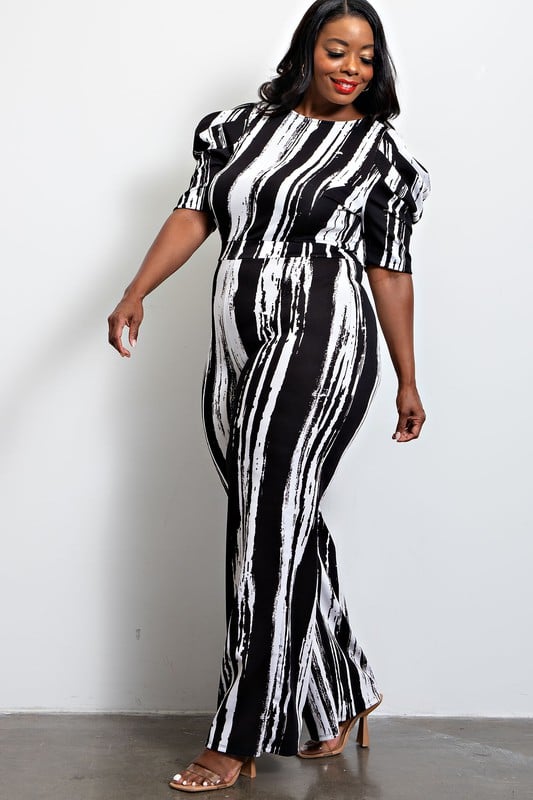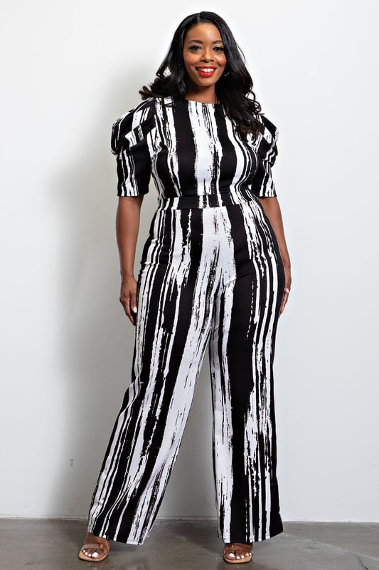 PLUS SIZE JUMPSUIT, WIDE LEG, PUFF SLEEVES